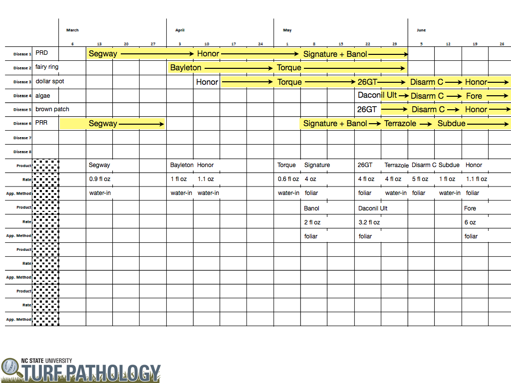 - The NC State Program has also failed to provide acceptable control of dollar spot. This is probably due to the intense dollar spot pressure this spring combined with the watering-in of most treatments for fairy ring and PRD.